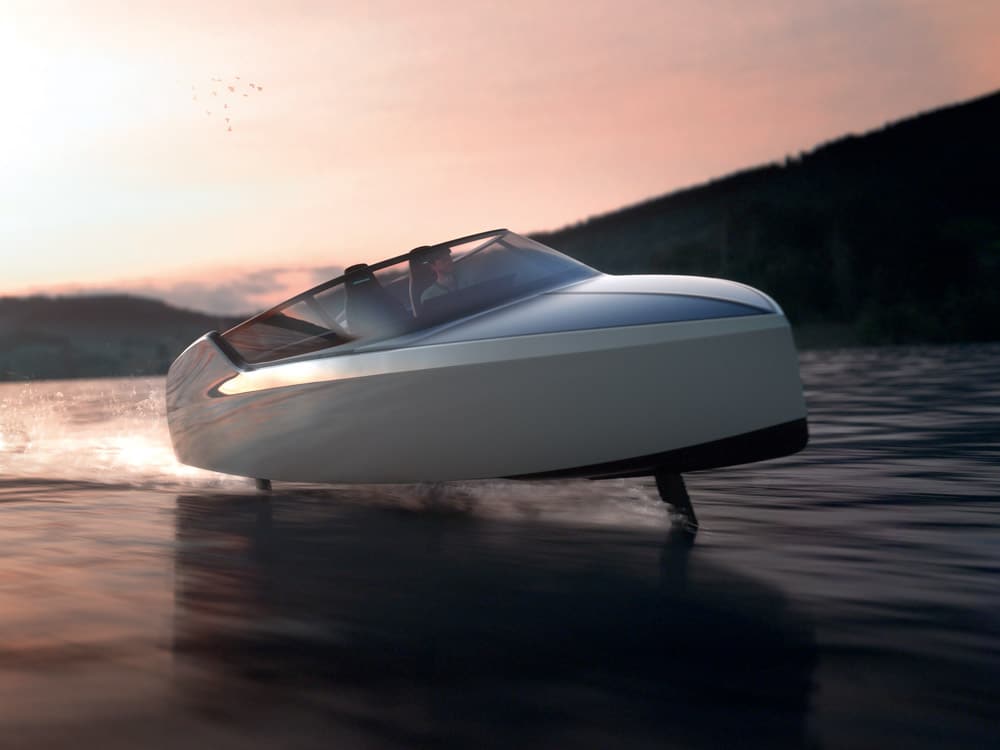 The co-founders of the Dutch company Edorado, Giel Groothuis and Godert van Hardenbroek, promoted their new 8.4m Edorado 8S electric hydrofoil sports boat. Designed by Ivo van Hulten, the 8S’s fully retractable hydrofoils are monitored by a proprietary automatic control system that adjusts the foil angles a staggering 100 times a second. The carbon-fibre hull’s draught is just 45cm when the foils are fully retraced and increases to 1.35m when they are deployed. The two 50kW electric motors and dual 40kWh batteries provide the 8S with a top speed of 38 knots and a 40nm range at 25 knots. The company has already built a full-scale prototype to test the retractable hydrofoils, and the standard 8S model will be available from spring 2023, with prices starting at €350,000.